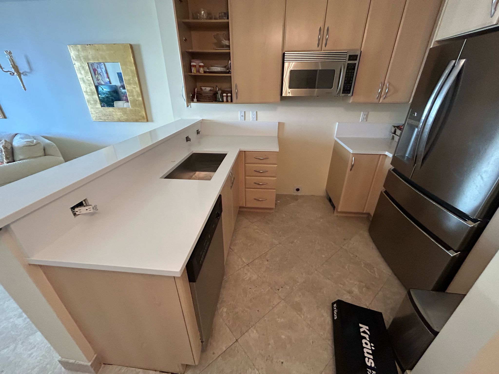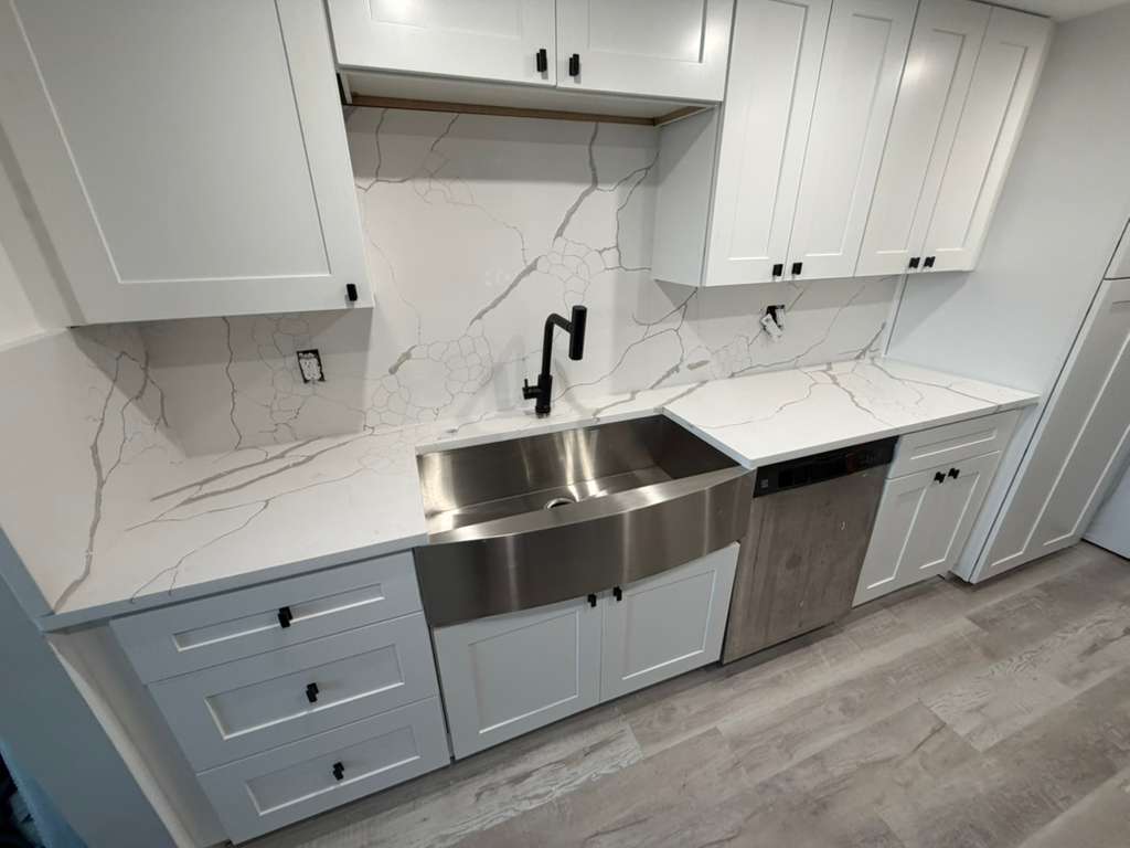 white quartz sink